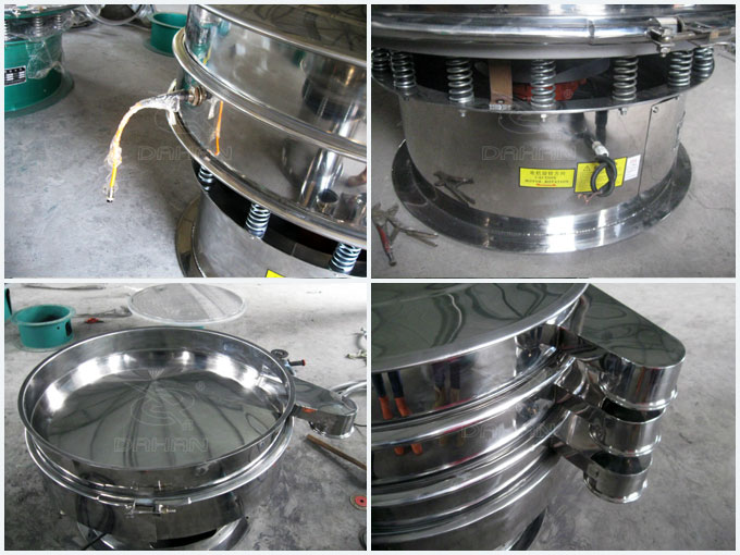 DH-400-4S振動篩采用304不銹鋼材質(zhì)制作而成,整機均為304不銹鋼材質(zhì),同時可以裝4層篩網(wǎng),把物料分為5個粒度。