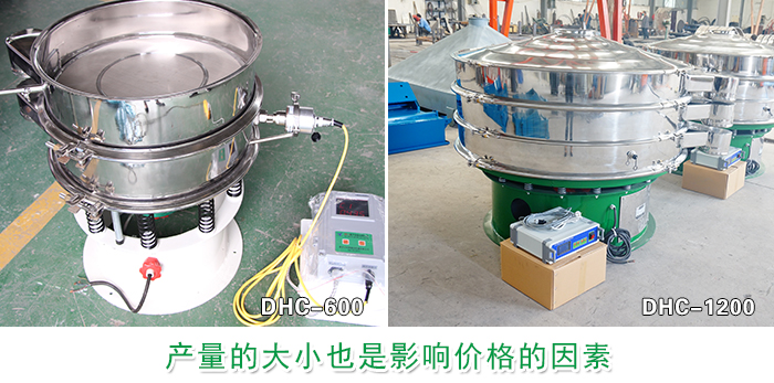 DHC-600型超聲波振動(dòng)篩:篩分直徑為550mm,每小時(shí)可篩分金屬粉末產(chǎn)量為200kg-400kg。價(jià)格在7200-8600元左右。