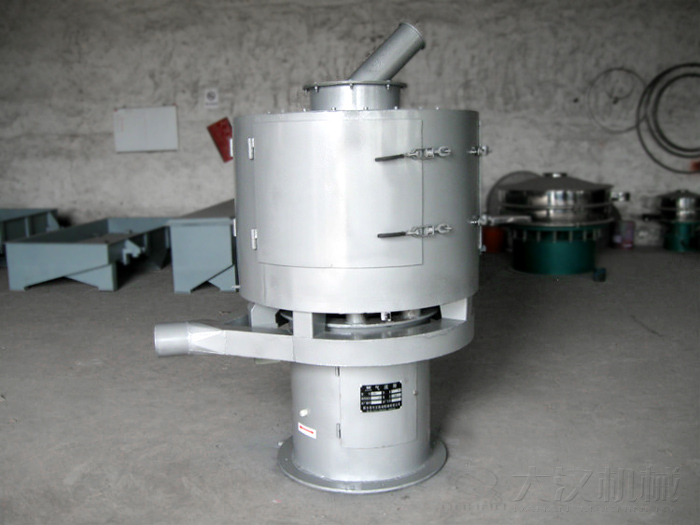 粉末顆粒立式氣流篩采用空氣作載體,動(dòng)能作功的原理,通過負(fù)壓氣流將物料與空氣混合后,進(jìn)入篩機(jī)風(fēng)輪中間,通過風(fēng)輪葉片施加足夠的離心力,將送入的物料吹起沖向圓筒狀的篩網(wǎng),細(xì)料透過篩網(wǎng)進(jìn)入成品儲(chǔ)料室,粗料從出料口流出,從而達(dá)到快速篩分的目的。